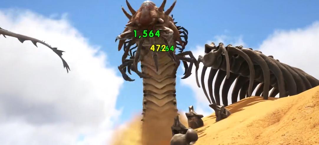 在沙盒游戏《方舟:生存进化》的焦土DLC中,我们经常会看到散落在沙漠中的巨型恐龙骨架,这些骨架是如此的巨大,从侧面上反映了《方舟:生存进化》焦土DLC的危险。而在这些骨架附近,我们经常会遇到一种名为死亡蠕虫的生物,它不仅有着大量的脚,而且样子看上去也很恐怖,就和放大了的蜈蚣一样,不出意外的话,周围这些巨型恐龙的骸骨便是这些死亡蠕虫的杰作。