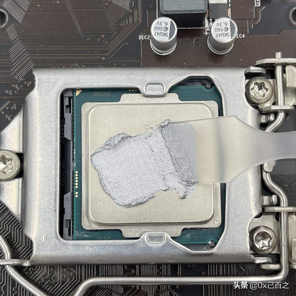 硅脂涂得越多,散热能力就越好?新手朋友误认为硅脂多有利于散热,硅脂挤得过多,导致压散热器时多余的硅脂溢了出来,粘在了主板上,难以清理。如下图,挤一次,够用十次的量!不论是单独购买的硅脂还是散热器附带的,往往只有几克的量,倒不是厂家小气,而是因为CPU确实不需要那么多的硅脂。