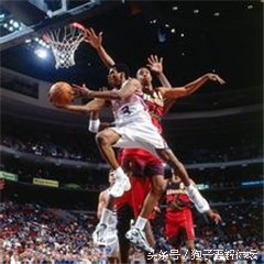 无与伦比的滞空能力,让小小的艾弗森可以杀入内线轻松得分,这也是艾弗森最为常见的得分手段之一。