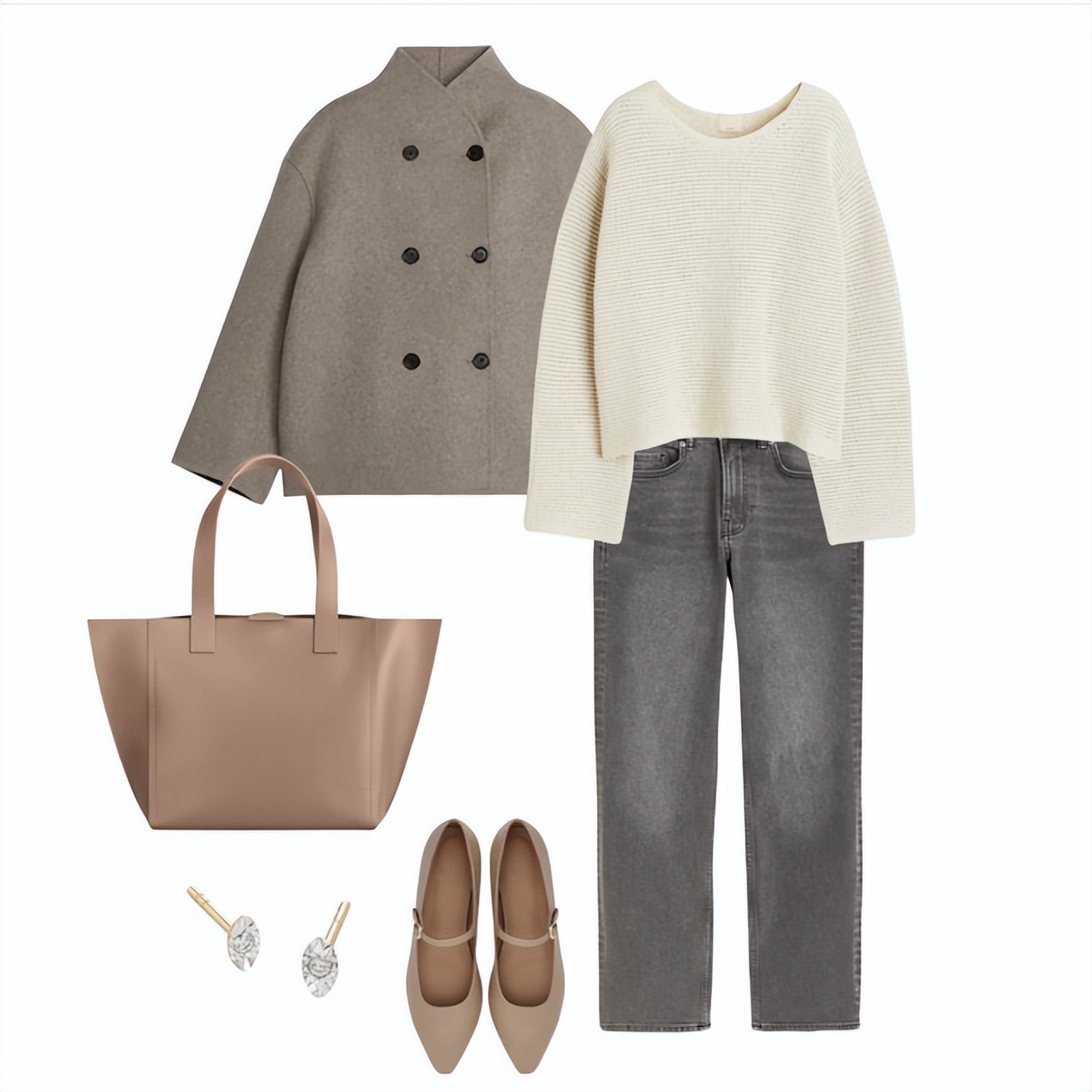 微冷的天气,就可以穿薄呢子款的小夹克啦,立领会让弧线式的剪裁更有型,咖色系也更知性,选舒服的奶白色宽松毛衫,搭配浅烟灰牛仔裤,舒适也大气。