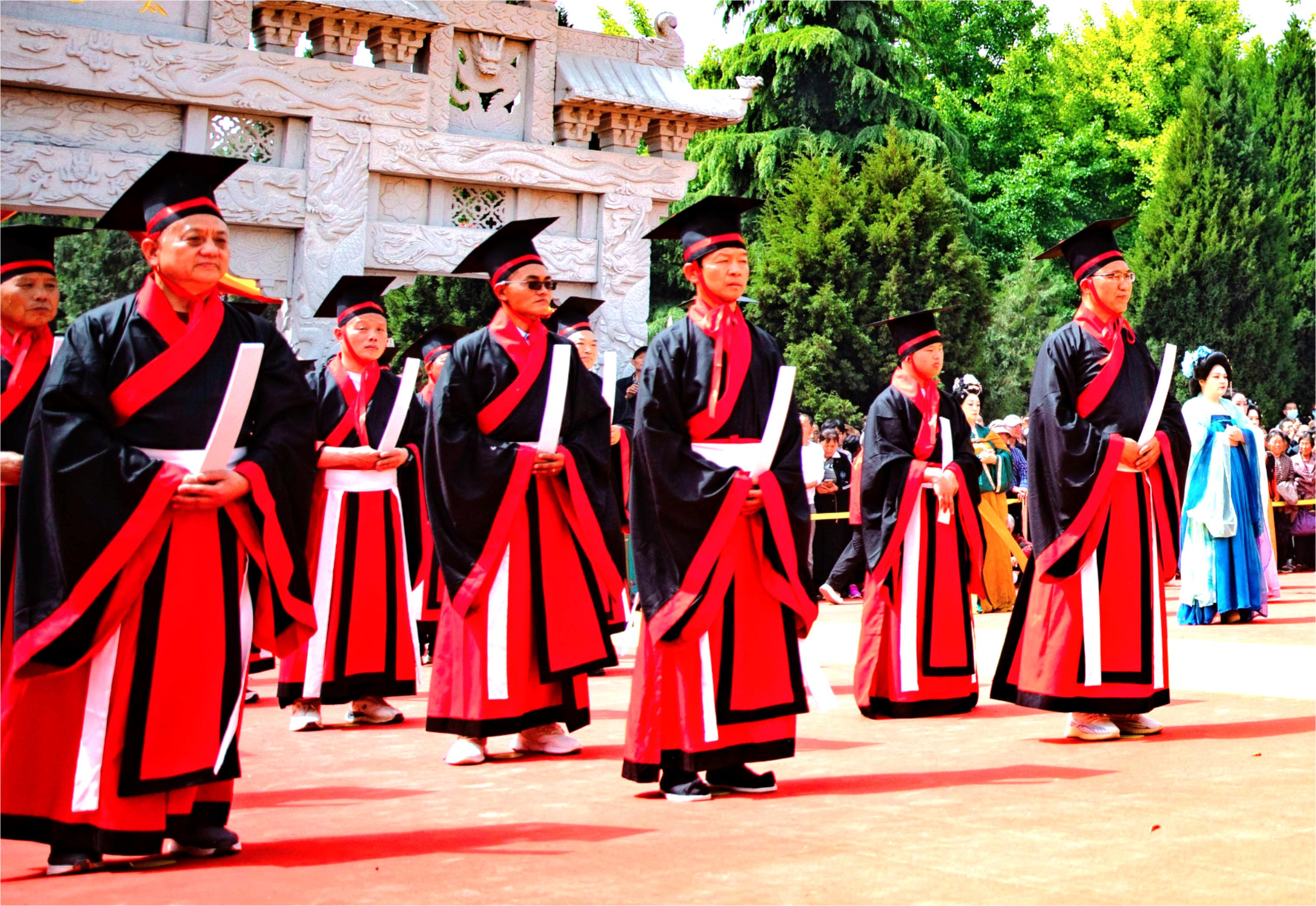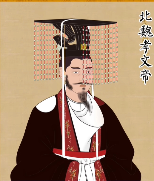 隋炀帝正式恢复了古代的冕服制度。文武官员朝服穿红色的纱单衣,白色纱内衣,白袜皂靴,戴进贤冠。