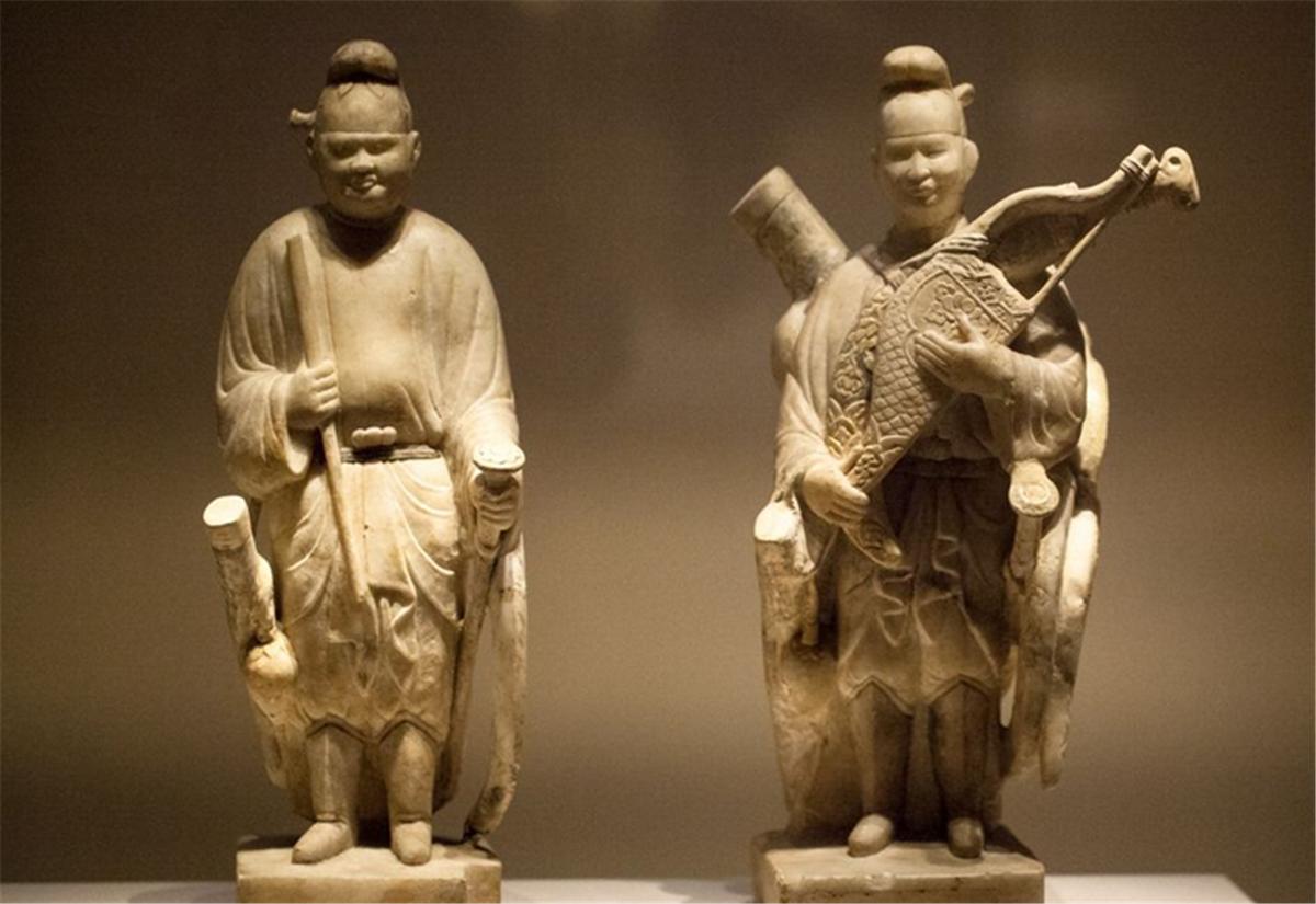 在西安郊区发现的唐代神功二年(698年)独孤思贞墓室中,出土了一批精美的三彩俑。其中有一件文官俑、一件武官俑,都塑造得栩栩如生。文官俑头上戴一梁进贤冠,上穿宽袖交领上衣,下穿白色裙裳,腰系宽带。上衣和裙裾均为赭黄色,这可能是由于三彩烧制时釉料颜色的限制,没有能正确地表现出应有的浅红色。从上面的介绍我们可以知道这是一套低级官吏的公服。