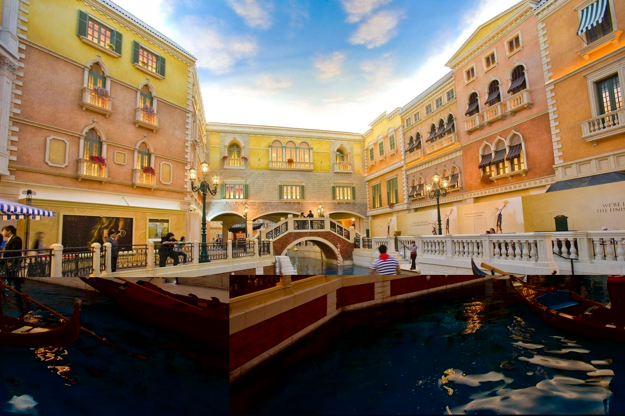 来澳门购物不去威尼斯人,几乎等于去北京不去故宫,作为独具威尼斯风格的大运河购物中心,里面云集超过350家购物商户和食肆。商场内蓝色天顶上流动着白云,行驶着贡多拉的运河,欧式风格的建筑拱桥,让人仿佛穿越到了威尼斯。
