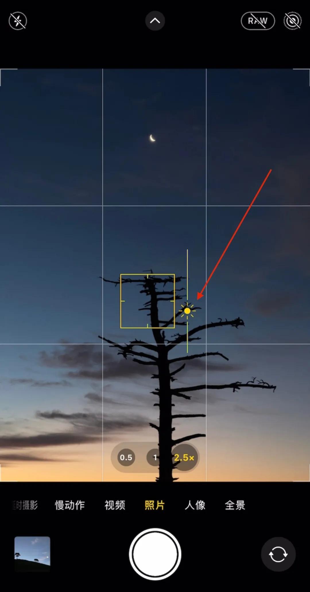 在拍摄时只需要打开Raw开关即可,拍摄完成后,建议用iPhone自带编辑工具进行调色效果更好,一般主要是光线比较弱的夜景和星空场景使用。