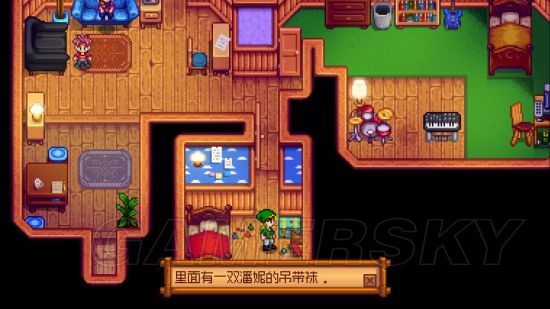 那么我们每天只沉醉于打理农场、钓鱼、下矿、维护世界和平,这样就够了吗?我们对身边的人有没有足够的了解呢?例如玛尼和村长的感情纠葛,克林特对艾米莉的小心思,这也是游戏内很有意思的部分呐~好的,下面八卦记者绿帽杏就要潜入(?)各个镇民的家中搜寻一番,看看能不能找到什么不一样的内容吧~