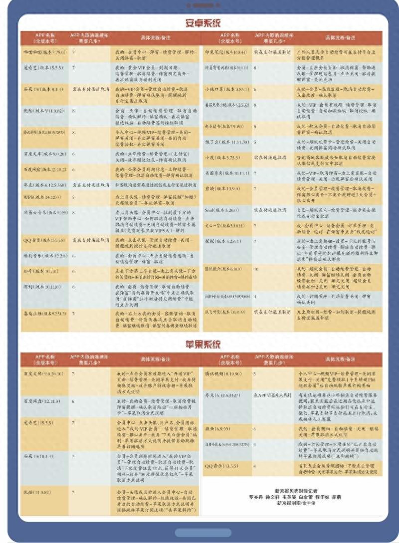 此外,本次测试为记者在APP中寻找取消续费通道的实测,其中一些APP可能通向取消的界面有多种路径,但由于交互界面不明显,记者难以找到从哪里取消。