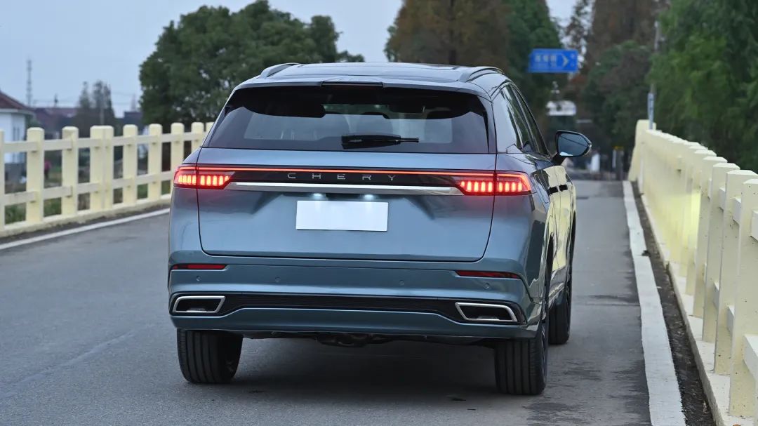 车尾同样采用了简洁的设计语言,尾灯做成了类似贯穿式的效果,中间有CHERY标识。不过这个尾灯从图片上看起来似乎有点小了,或许实车的观感更好。下方的保险杠造型也比较常规,目测排气管口仅为装饰。
