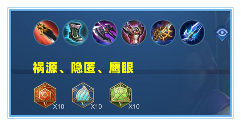 这套出装和铭文是我常用的,之所以叫「稳健流」除了最后一件装备选择的是名刀司命,最主要的是和第二套极限输出流区分开来。