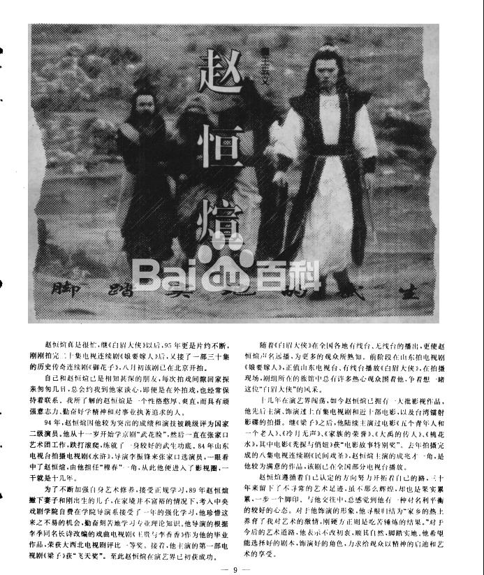 在他毕业之后,就接到了第一部自己是男主角的戏《白眉大侠》,并且这部剧还是国内首部武侠剧,而赵恒煊就在里面饰演白眉大侠。