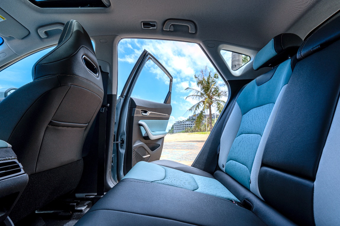 内饰设计上,亮点同样集中在配色上,浅蓝色+灰色的撞色设计与外观相辅相成,尽显年轻。配置上,诸如倒车影像、自动驻车、多种驾驶模式、电动天窗、无钥匙进入、无钥匙启动、车联网、全自动恒温空调等一系列舒适性配置都有装备。