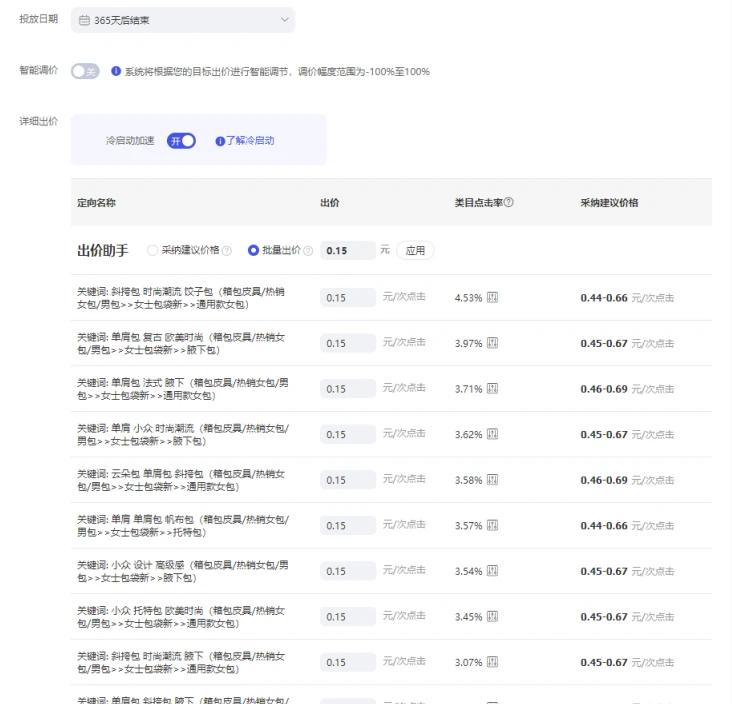 第五步:定向出价,出推荐出价的三分之一的价格