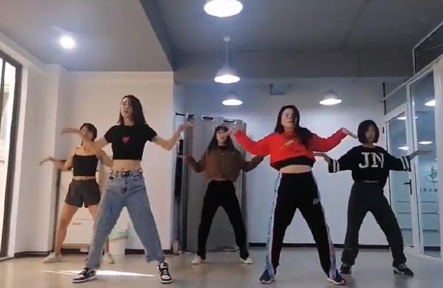 视频中的龚琳娜老师身穿红色短款长袖,搭配黑色运动裤,散着一头长发,在家大跳热舞十分自信。她的身边还跟着四位舞伴,应该也是教她跳舞的老师们。