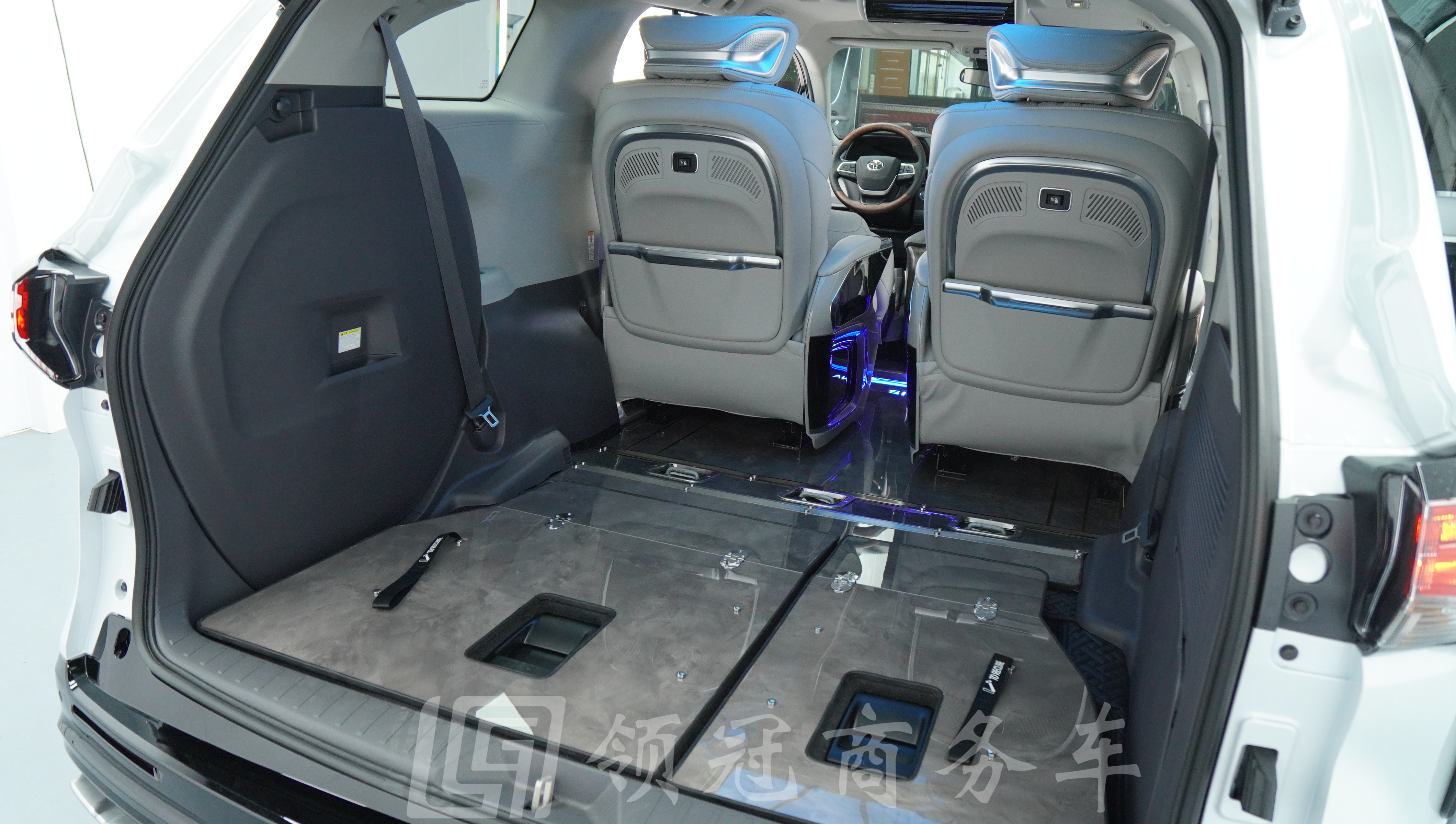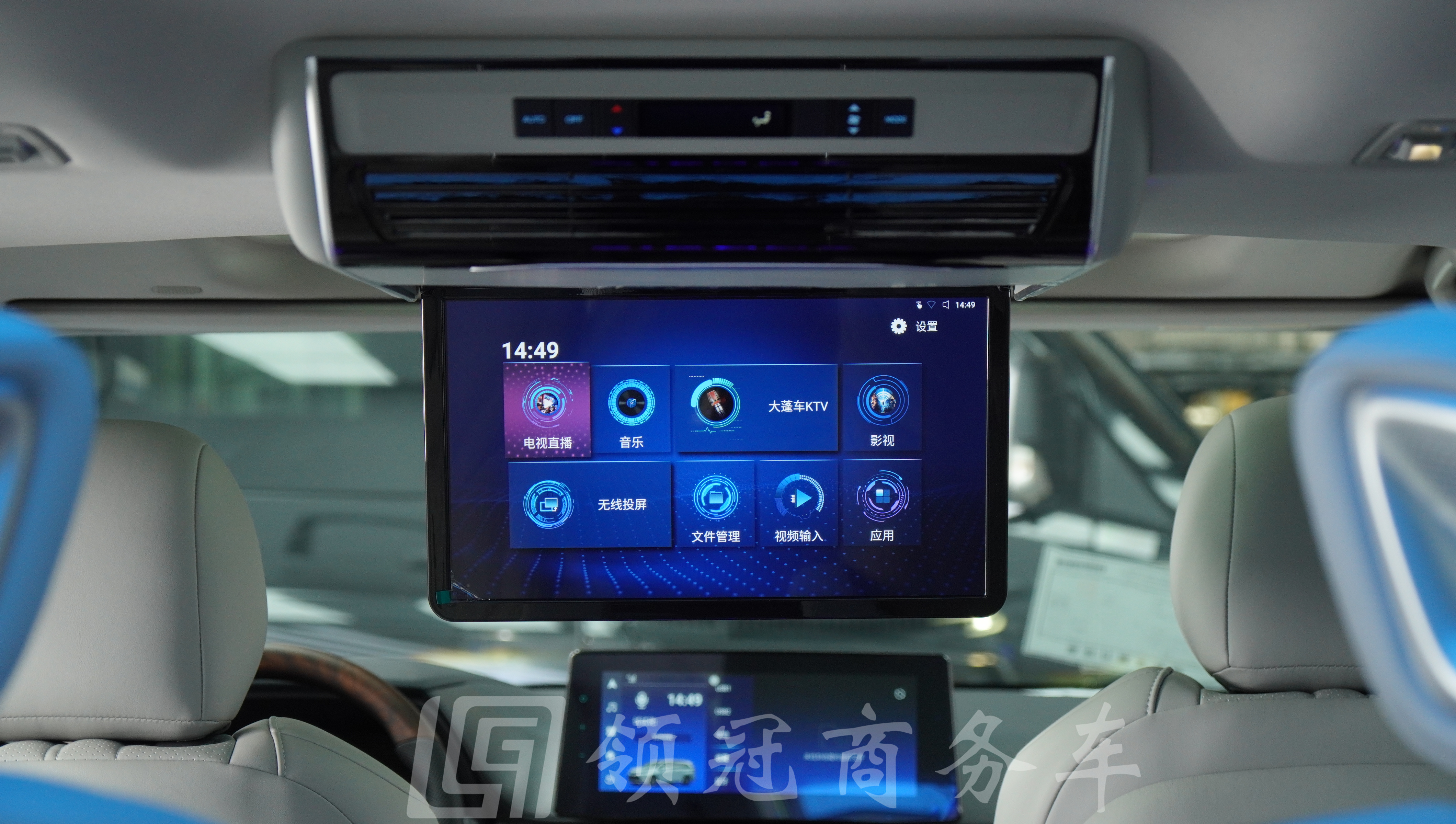 顶部加装的顶灯和可折叠的电视机都增加了车内的实用性和多功能性,满足我们日常不同的使用需求,还有全车氛围灯的加持,也是大大增加了我们的视觉体验。