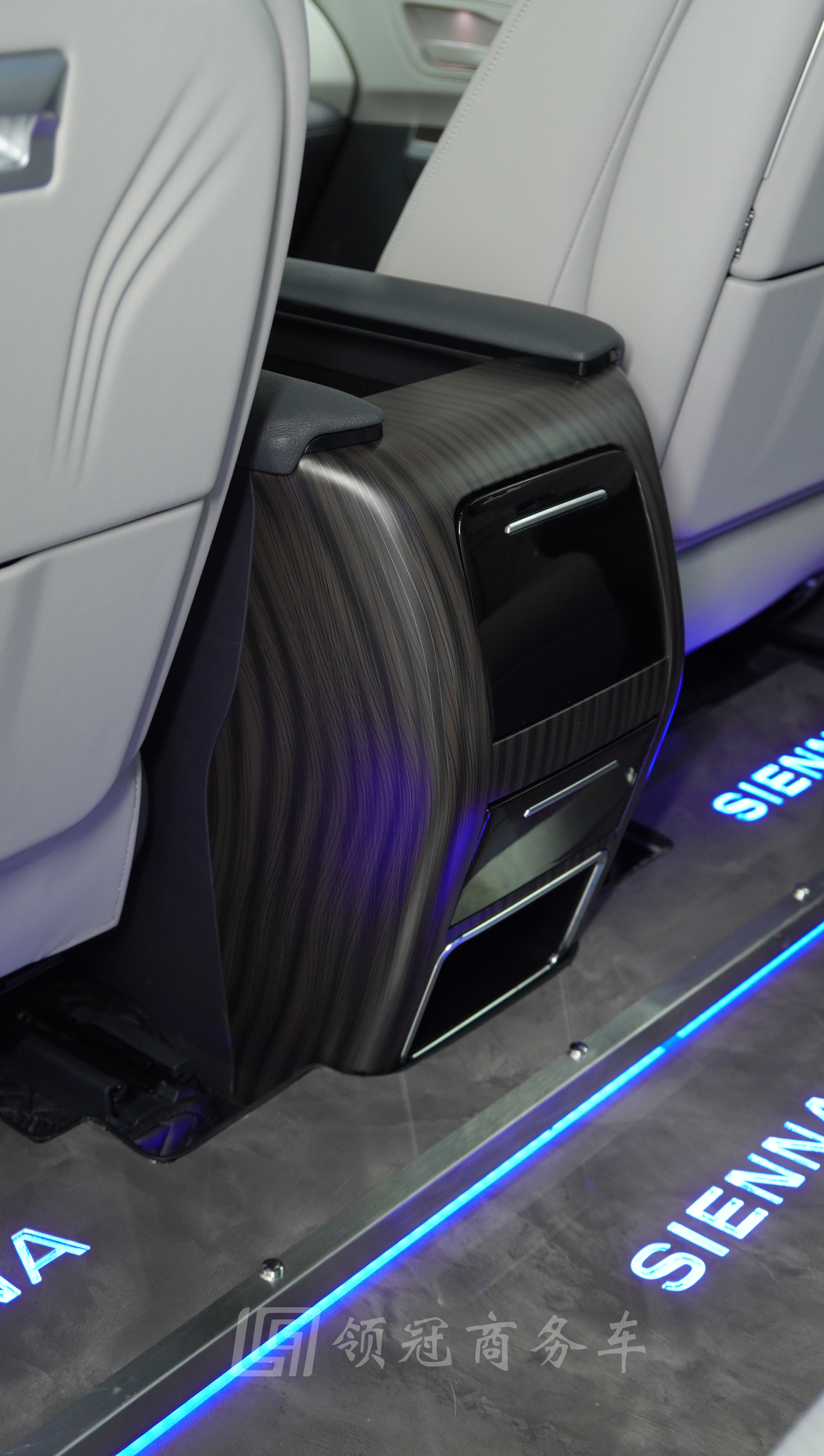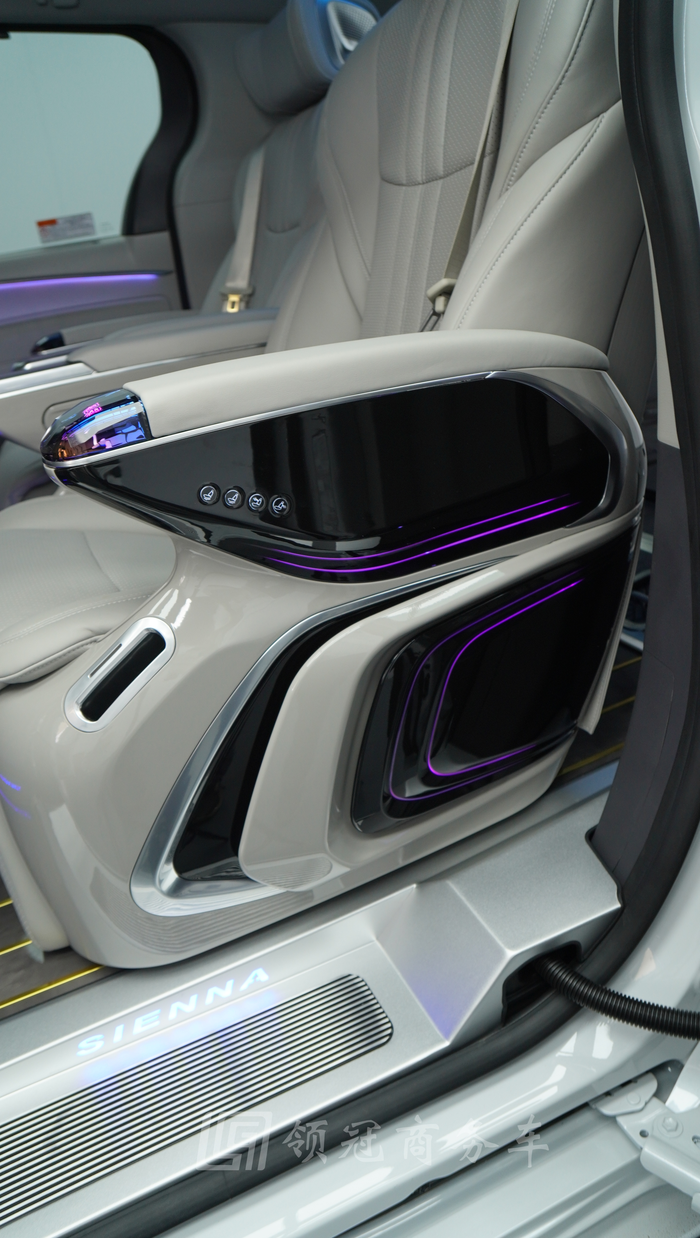 二排核心中的核心,那就是这一对水晶宝珠的航空座椅了,塞纳对二排座椅的要求非常高,因为塞纳的车内高度相对威霆、GL8都要矮,所以塞纳的座椅一定要使用专用座椅,这样才能保证不压缩我们头部的空间。除了保证通风加热按摩这些航椅必备的功能之外,这个座椅还有语音控制功能