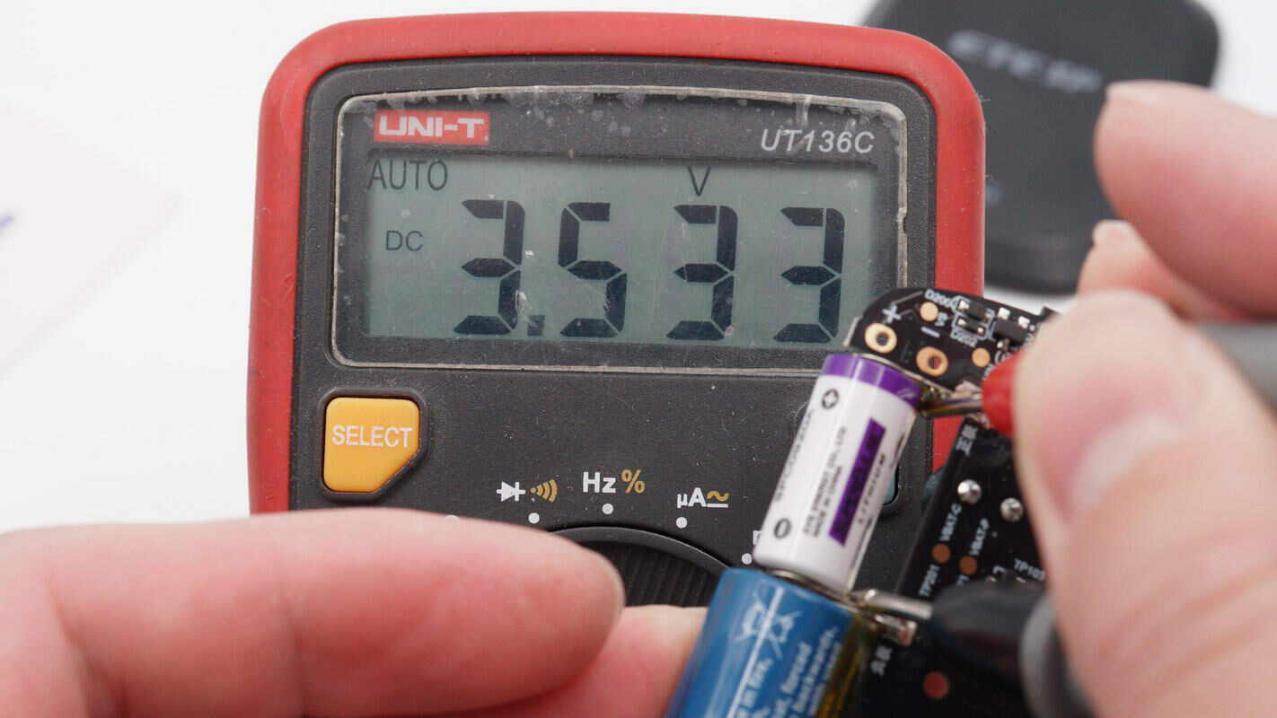 测量内部锂/亚硫酰氯电池电压为3.64V。