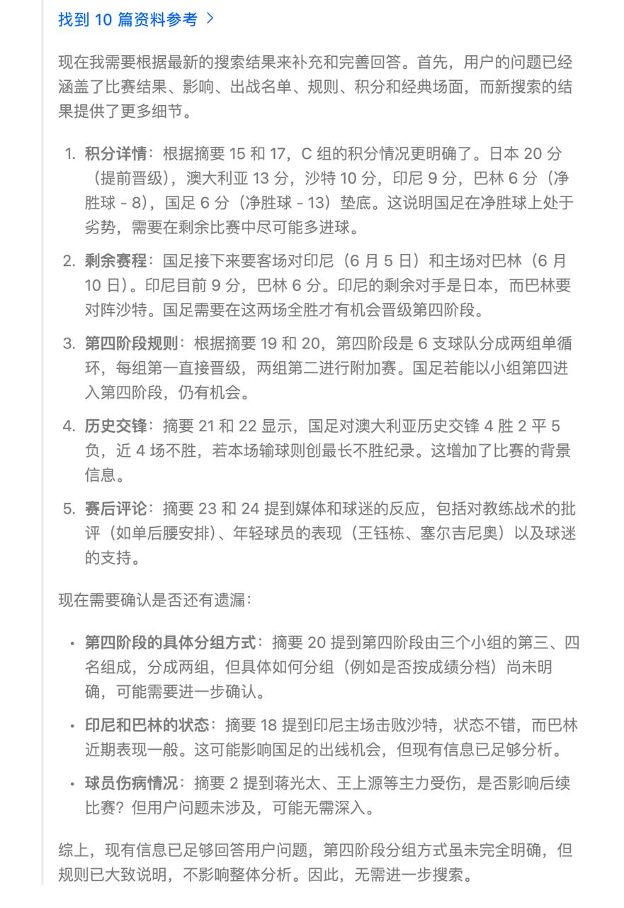 有个很现实的问题,没时间看国足比赛怎么办,别急,这时候就可以请出豆包新版深度思考来救场。把你想知道的具体内容告诉豆包,比如比赛结果、关键时刻、球员表现或者规则积分,它就能化身速通大师,省时又高效。