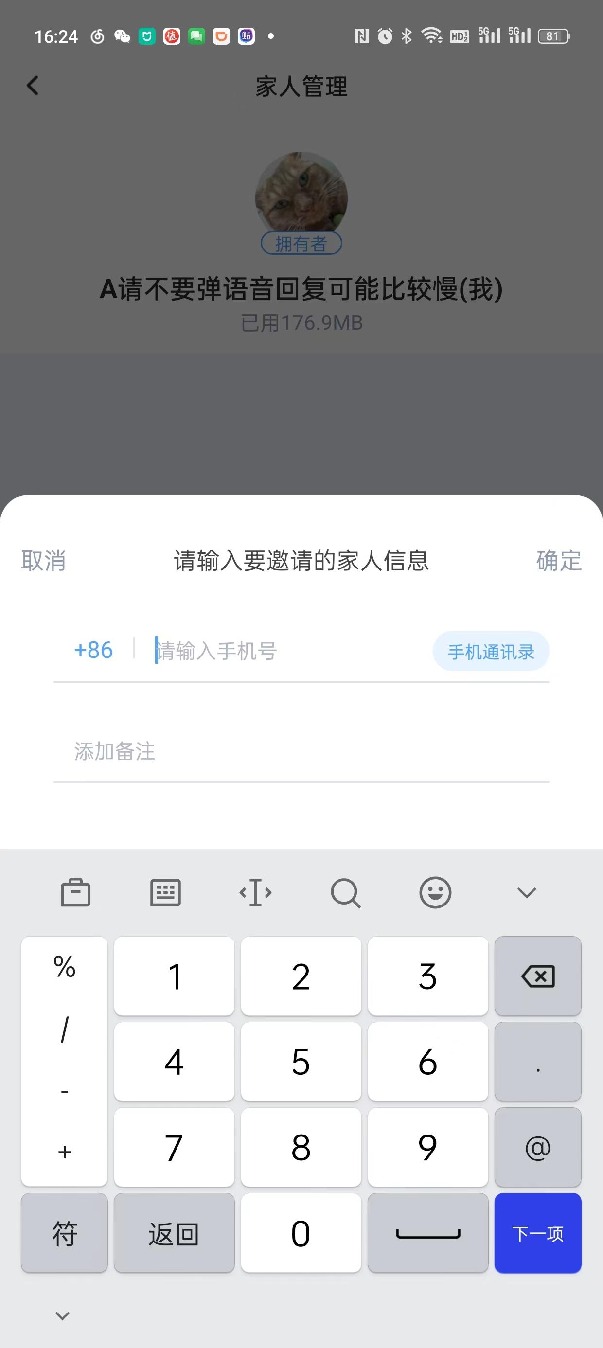 之后填写家人的手机号,支持直接从手机通讯录中选择受邀人,之后会发送给受邀人App的下载链接,跟着安装注册登陆一下即可。
