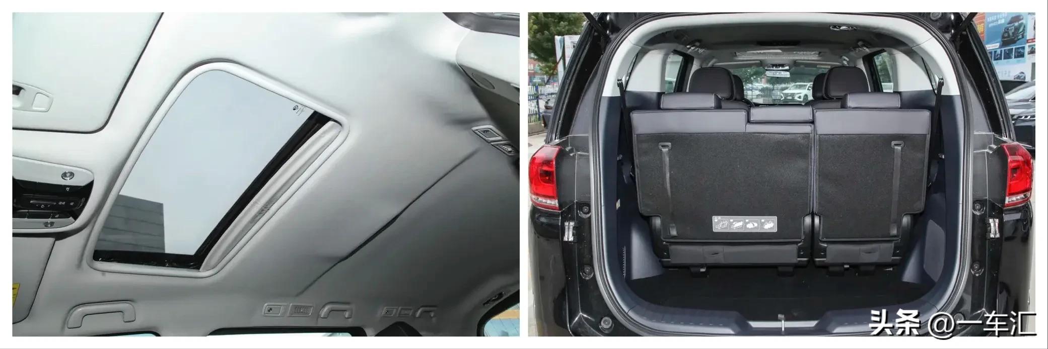 豪华版车内搭载的是常规面积电动天窗,带三排座椅正常使用时,后备厢仍有一定装载空间,用来放置小件行李,后排座椅靠背支持按比例放倒,进一步提升车内实用空间。