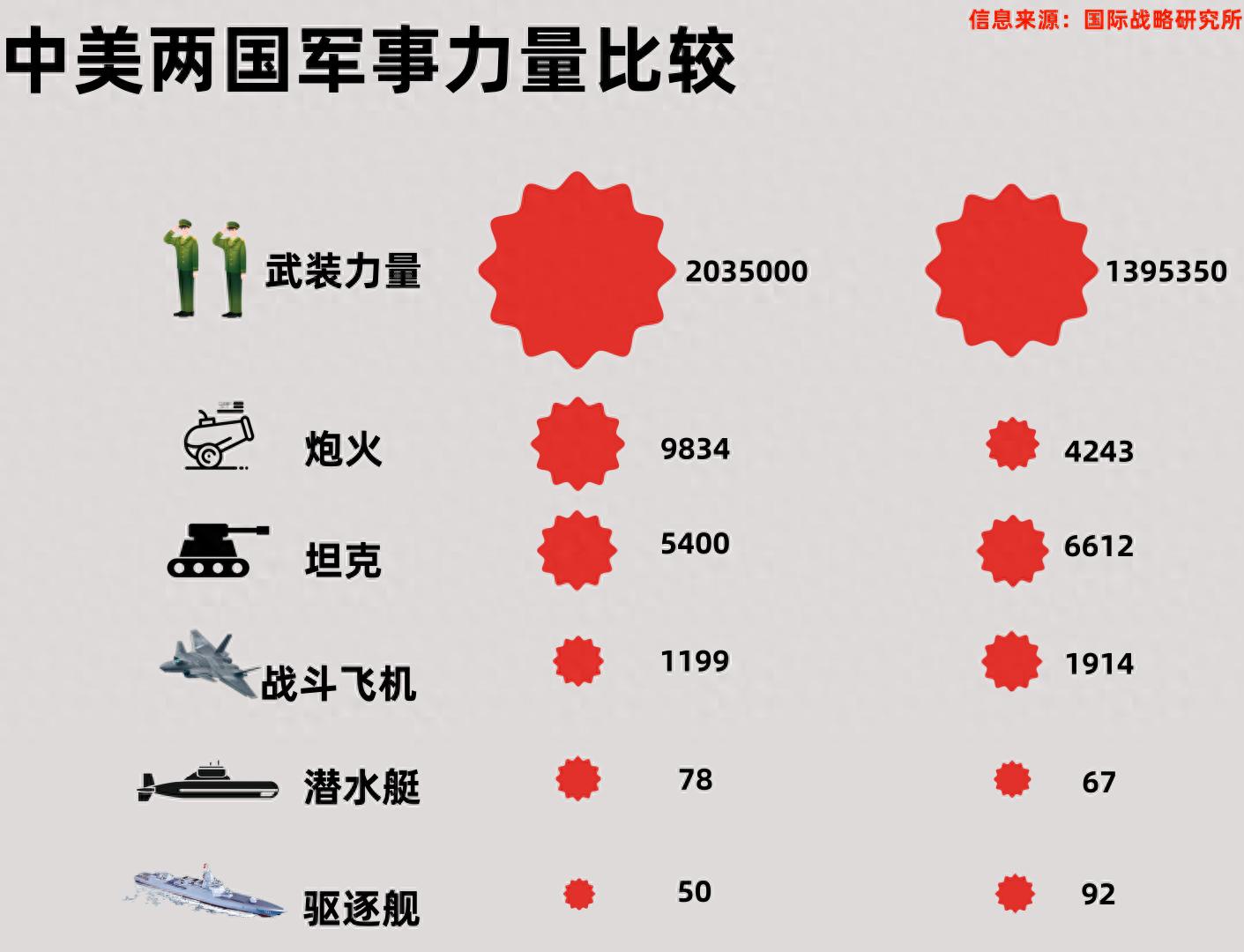 中美分别作为世界第二经济体和世界第一经济体,本文通过图片数据形式来展现中美军事量的比对,以便我们更好的了解对手的实力。
