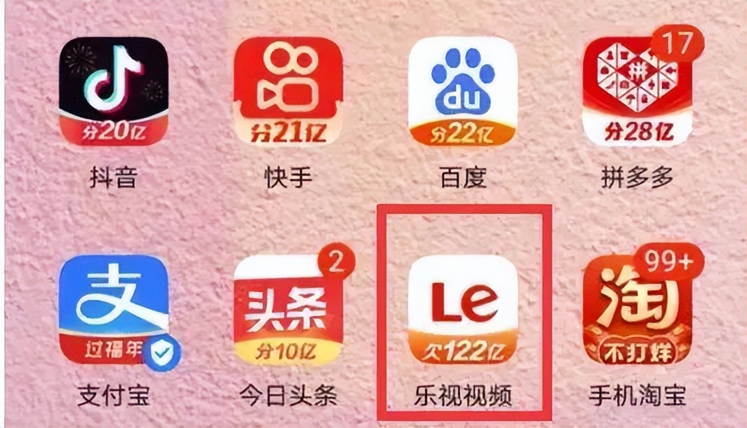 还有乐视因为欠122亿陷入窘境,没有藏着掖着,而是主动宣布欠122亿,直接在春节期间大胆展示在APP图标里,也引发众多网友的围观。