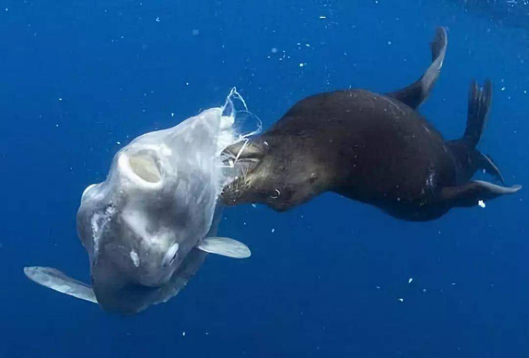 曾经有摄影师在海洋中拍到过一组海豹正在啃食翻车鱼的画面,在照片中翻车鱼面对海豹的攻击不仅没有反击,就连逃跑也没学会,以至于被海豹慢悠悠地啃食。