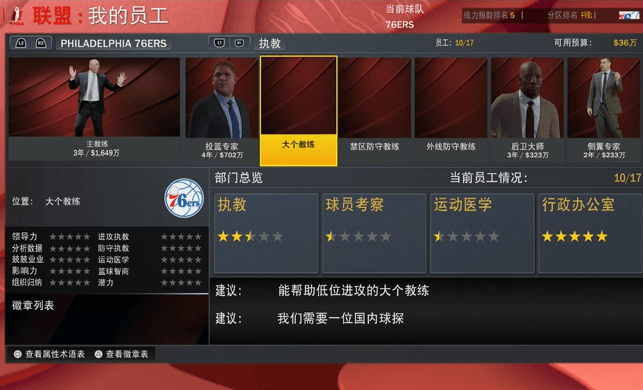 至于第三种以球队经理视角为主的“终极联盟”模式则和此前大体相同,依然是经营球队制霸NBA联盟的王道玩法。球队的经营虽有了更多可分配的人员岗位,但整体并无太大进步,依然是打理球队,在各个球队管理层之间周旋,并尽可能带领球队在联盟中取得更多胜利。