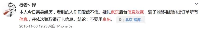 我们在微博上搜索了用户对京东泄露信息的投诉: