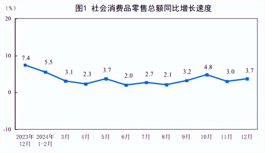 来源:国家统计局网站:2024年12月份社会消费品零售总额增长3.7%