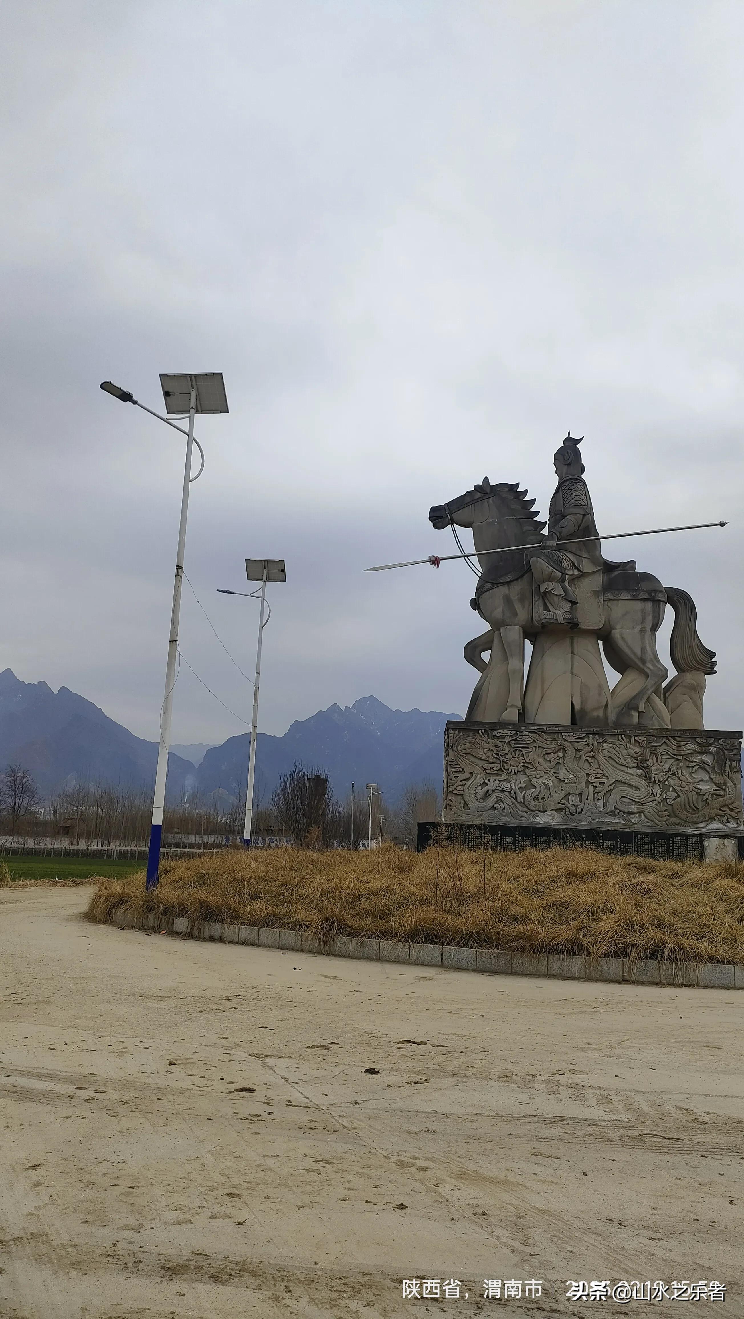 西马村村南口:唐汾阳王郭子仪石雕像与少华山合照
