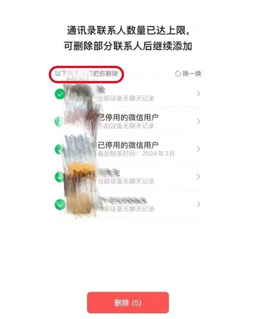 10月23日,社交媒体消息称微信正在进行一项新功能内测——可以查看已删除自己的联系人/好友,并可以选择性筛选与删除。记者看到,多名网友晒出的截图显示,微信提示“通讯录联系人数量已达上限,可删除部分联系人后继续添加”,并给出几个联系人选项,用户可直接删除或选择“换一换”。