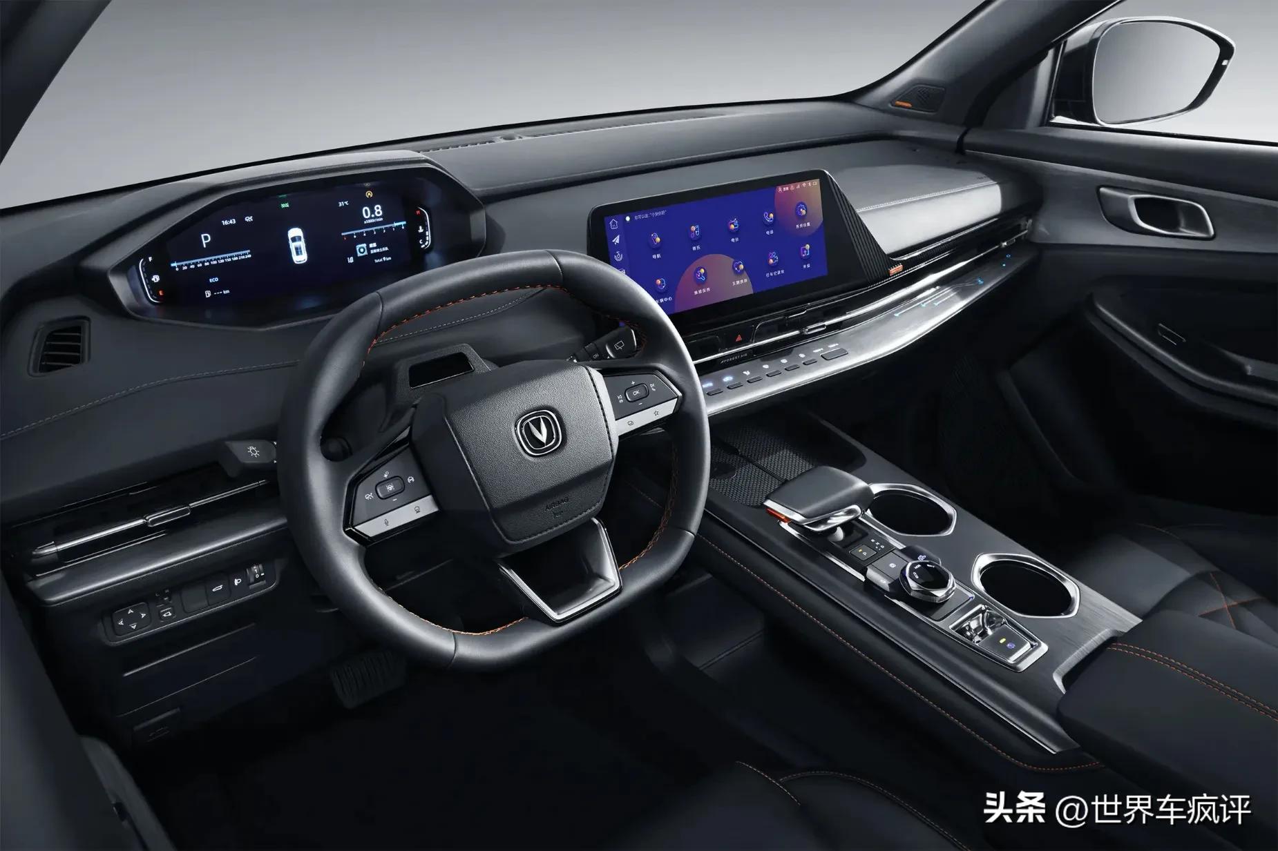 这款车相比逸动空间大不少,配置也是相当的丰富,碰撞预警、全速自适应巡航、540°度全景影像、六个安全气囊、车身稳定系统、胎压监测,都是一些非常实用的配置,它都是标配,而且这款车主打的就是燃油经济性,所以也会非常省油,这款新车在A级市场可以说是“卷王”的存在了。