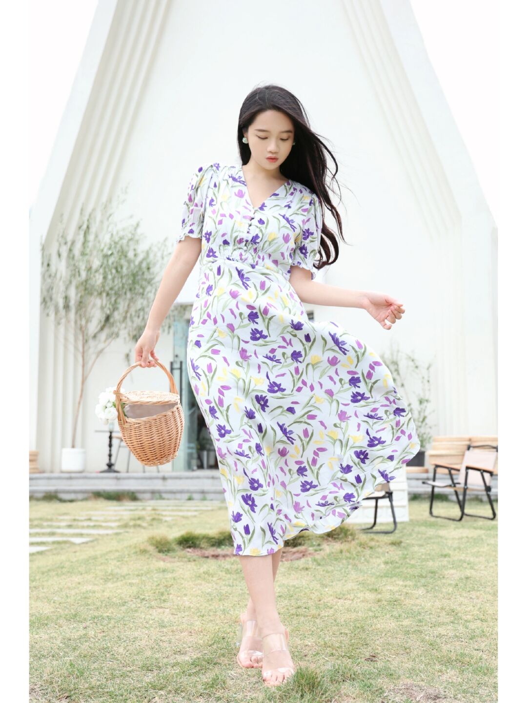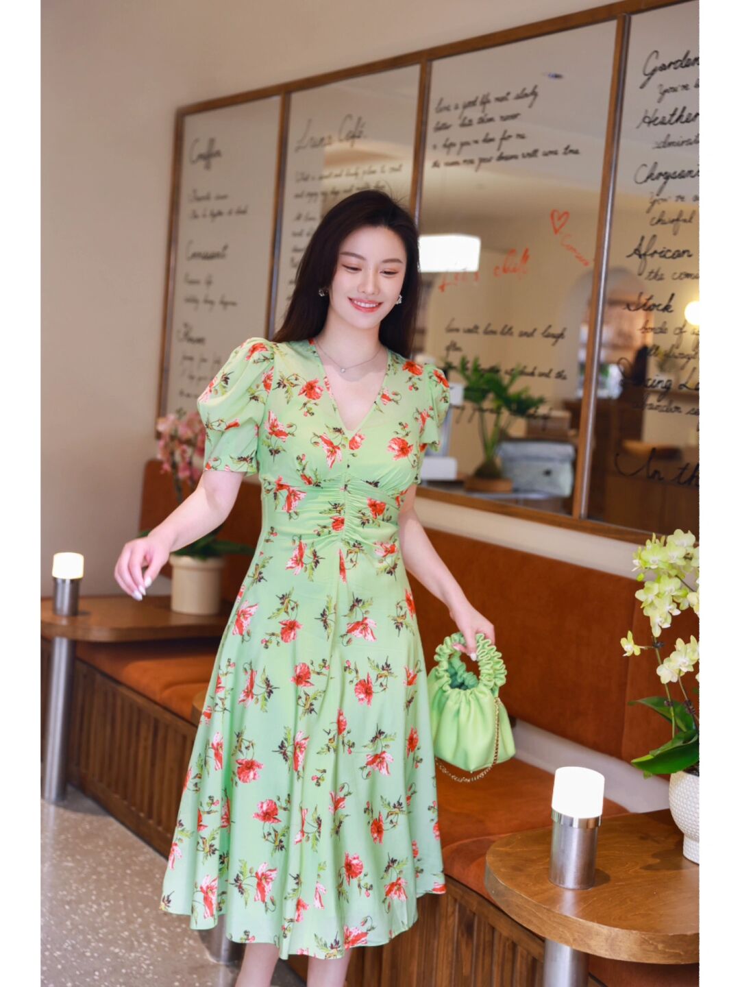 穿搭这样的碎花裙,出门游玩的话,拍照就非常的上镜了,可以搭配上一些草编包,法式氛围感拉满,又美又甜,精致时髦又贵气。