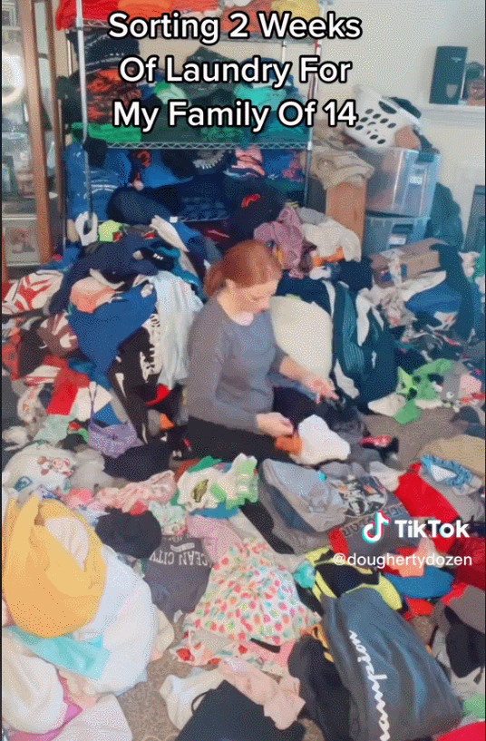 她坐在衣服堆里收拾衣服的样子,简直让人油然而生一股敬意,网友热评:换做是我,我真的会哭出来。