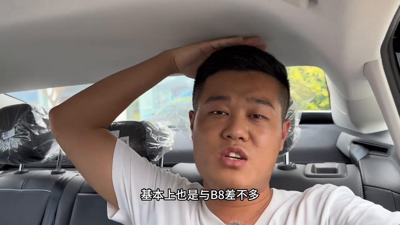 再来看一下后排乘坐空间,这辆B9与B8可以说是一模一样,因为它的轴距没有发生变化,但是这辆车我感觉它的后排座椅填充物明显是要比B8更加柔软。再来看一下头部空间,基本上也是与B8差不多。