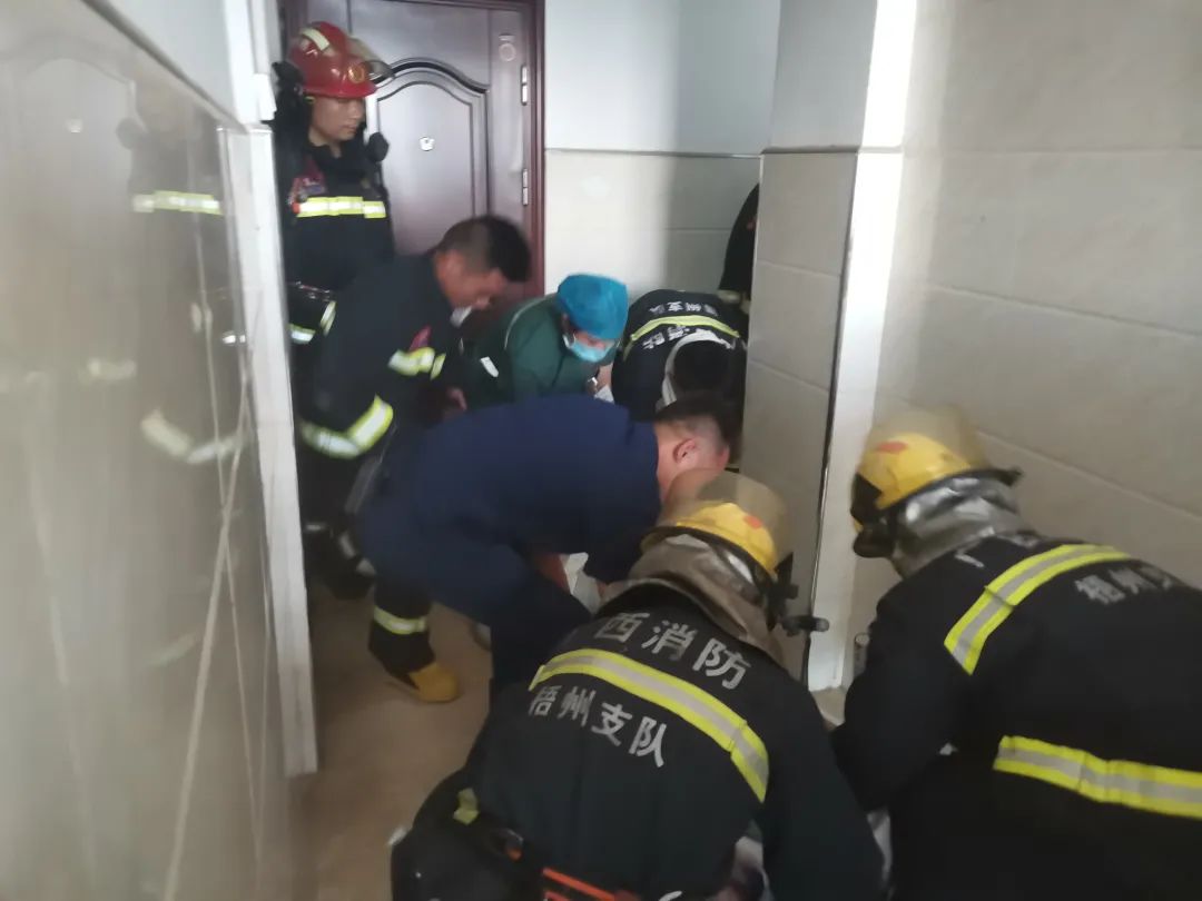 2022年6月27日15时40分,梧州市消防救援支队指挥中心接到报警:龙圩区阳光庭院9栋一住户发生火灾,有大量浓烟冒出。接警后,梧州支队立即调派救援人员赶赴现场扑救。