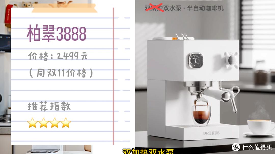 双加热双水泵标配OPV的情况下,2500价位段上兼顾了家用尺寸、颜值在线、金属机身、合理配置的产品了,尤其是官方OPV对小白用户非常友好,最近把直白放在了办公室,全线好评。半自动配磨豆机的话,这台也值得配倒3766了。