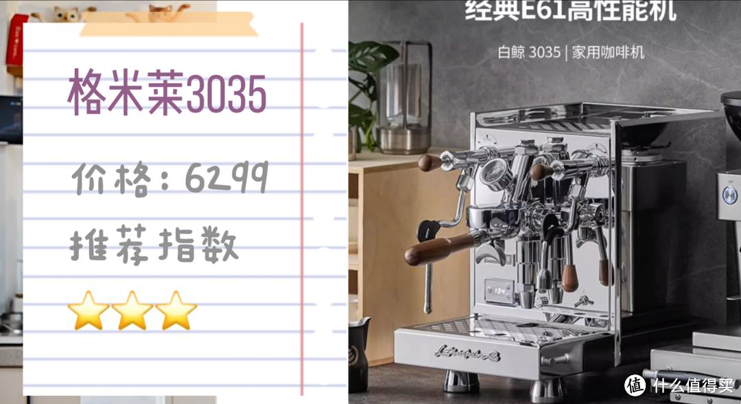 家用国产大牌格米莱白鲸3035,子母锅炉+E61,普通版本配振动泵是6299,PRO版本旋转泵加变压是8999,建议普通版