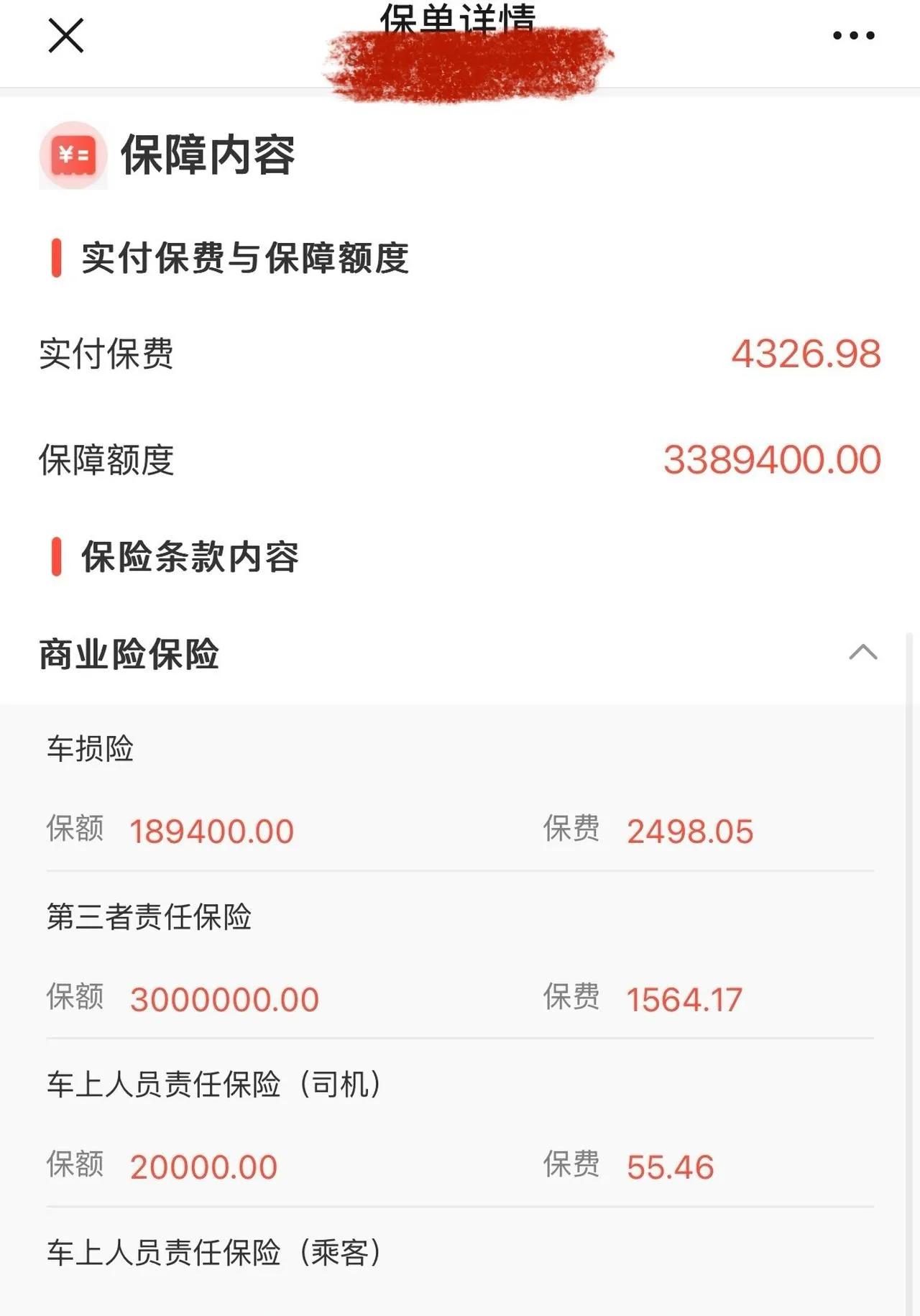 保险费用实录: