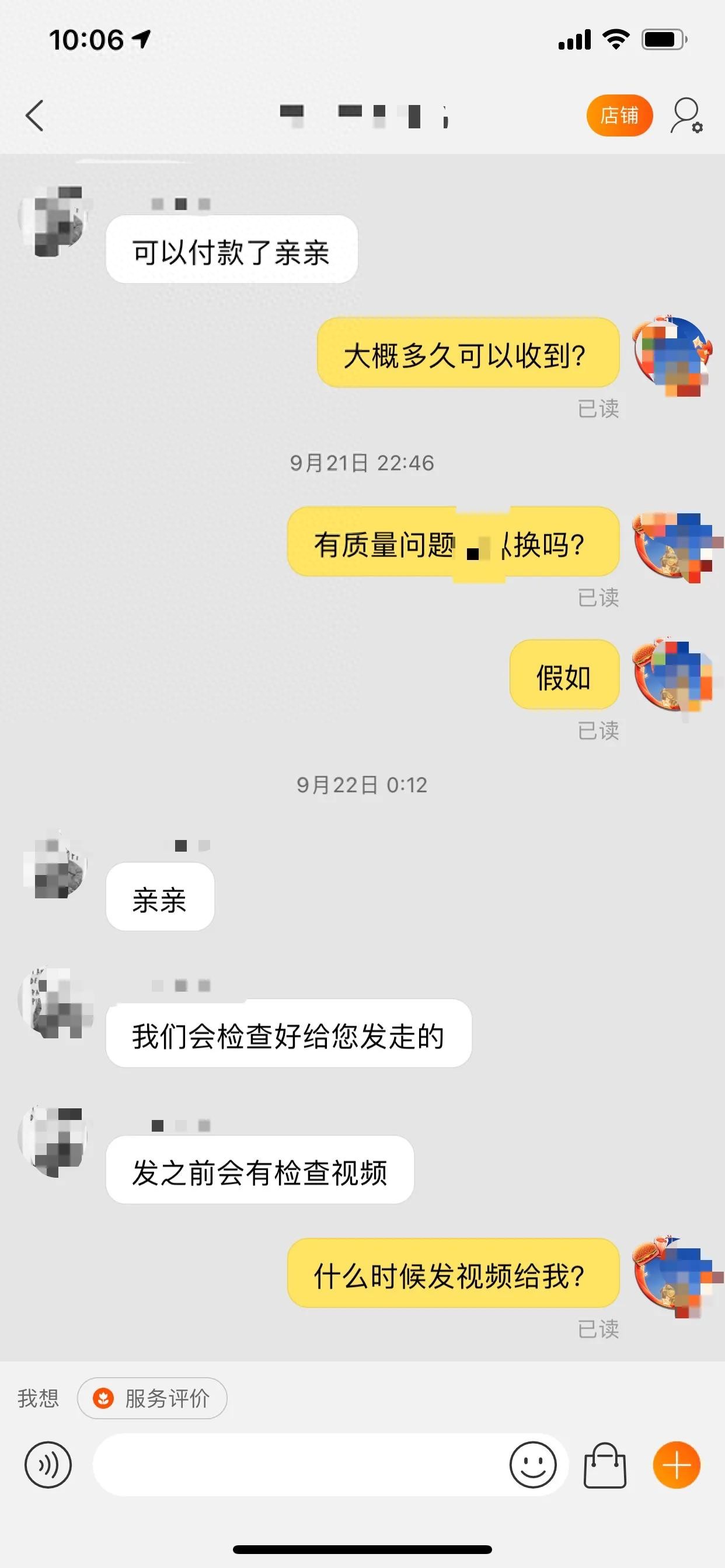 卖家承诺第二天或第三天就发货,并且不退不换,我说有质量问题怎么办,他们说会有检查视频发给我,保证不会有问题,好吧我等,第二天三天,催了几次,检查视频也没发我,好吧算了,估计发货了,没有检查视频了,然后要求他们提供国际物流单号,也没有。我也不是很闲的人,基本就是好几天了突然想起来就问一下,从来都没有得到回答