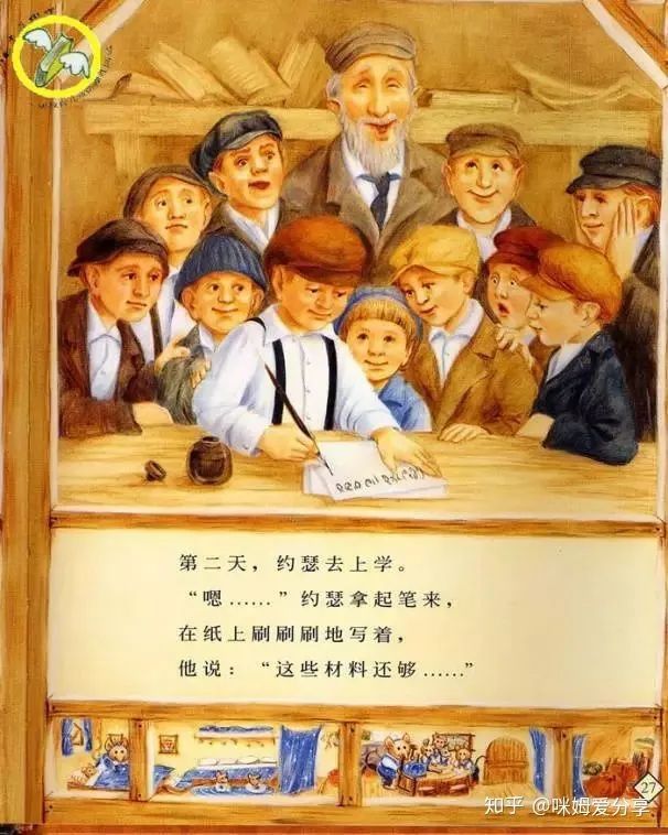 爷爷灵感的高峰是面料变成了纽扣,而高峰的高峰自然是这一本书的结尾:这些材料还够……写成一个奇妙的故事。真是让人赞叹不已。