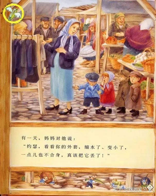 很快,约瑟又长大了,衣服已经短了,妈妈又叫他扔掉,约瑟坚信“爷爷有办法”,于是衣服又很神奇的变成了马甲,吸引了所有人吃惊的目光。