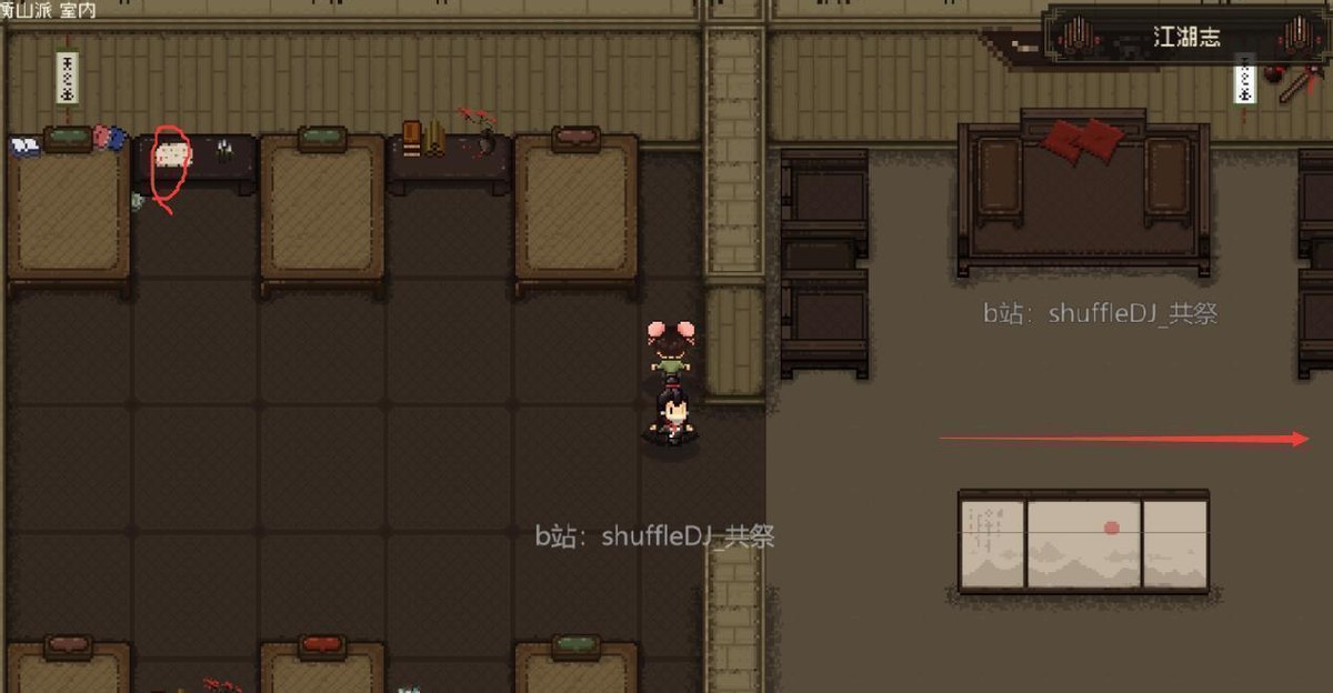 这里左上圈圈是任务物品独活 左下箭头方向有个参同契 直接主角吃掉身法+1