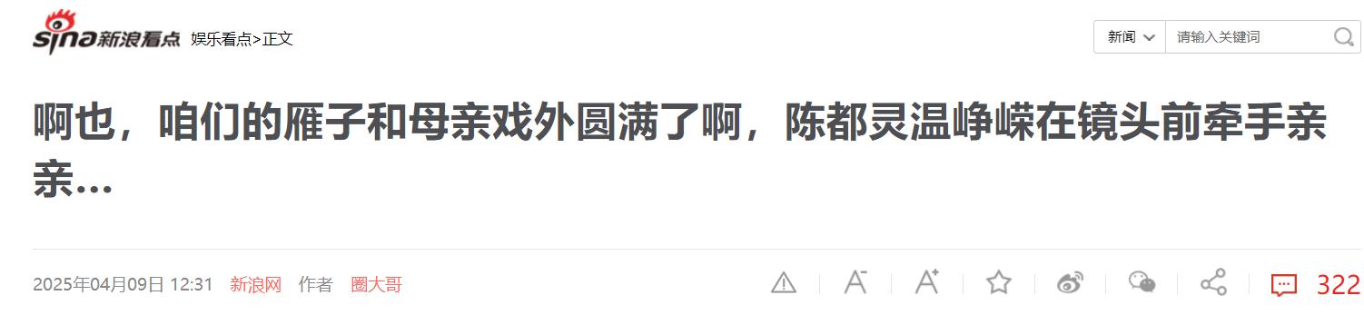 信源2:新浪网 2025年04月09日 12:31 《啊也,咱们的雁子和母亲戏外圆满了啊,陈都灵温峥嵘在镜头前牵手亲亲…》