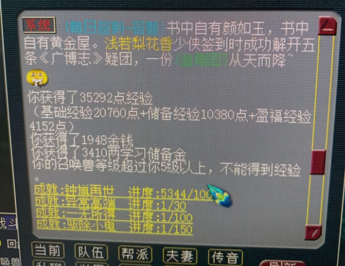 上面是一位70级的玩家抓第一只鬼获得奖励,储备金模式下储备金+梦幻币的总额是5358,感觉这样的奖励比以前少了很多。有人说是没领三倍,小编算了一下,现在只领双倍的奖励是5358,再领三倍奖励就变成8037,这对于70级的第一只鬼来说奖励太多了。所以70级领了双三的第一只鬼就是给了5358。80级以下的玩家抓鬼的收益比以前更低了。