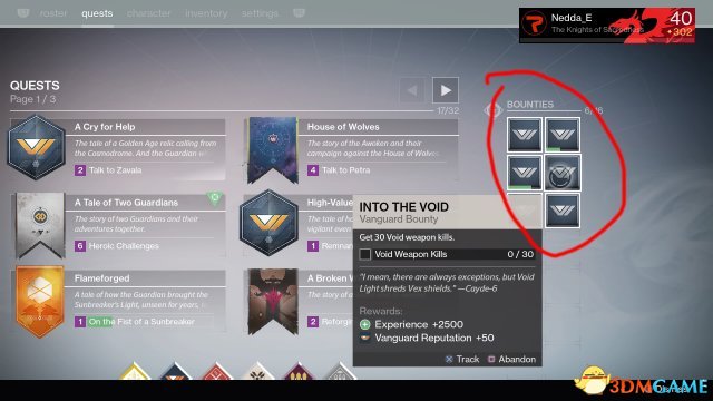 每日任务接了以后会出现的任务列表的右侧,最多可以接16个。 (也就是说如果你只做PVE bounty可以攒2天然后一起做)