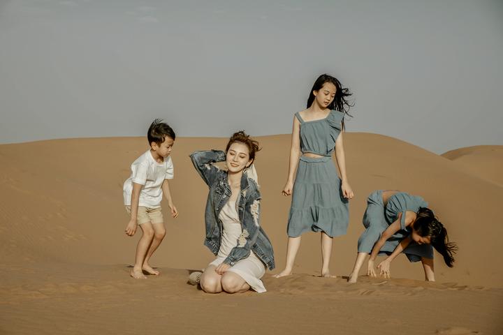 工作之余,无论多忙,她每年都会带孩子们一起旅行,去世界各地开阔眼界。今年她选择了去沙漠,虽然照片拍得很美,但是孩子们体验了住在汽车里,缺水、浑身沙土、到处是小虫的艰辛旅途。她想让孩子们知道,人生中不可能都是一帆风顺的生活。