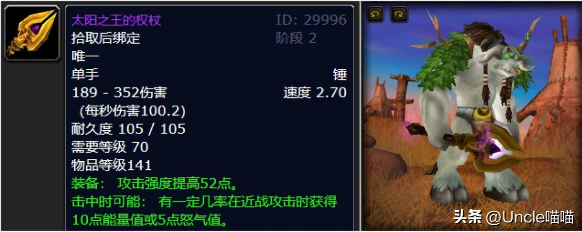 TBC整个版本最为协调的魔杖,它就是我们的遗忘之星,喵叔愿称他为“TBC最强配装神兵级魔杖”,虽然感觉上法术命中一点点、法术暴击等级提高一点点、法伤加持也是一点点,但就是这三个一点点让它成为法系DPS争破头的极品,到后面星术师没人问候后,有多少玩家埋头痛哭黯然神伤!