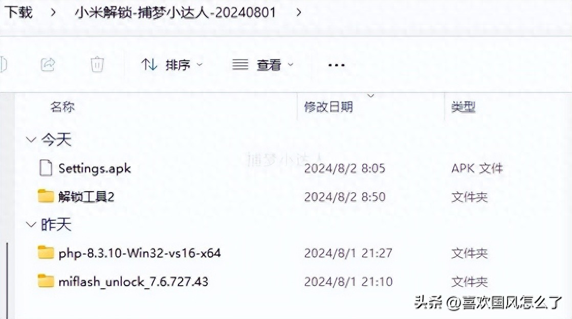 1. 捕梦小达人 公众号回复 “小米解锁”下载所有文件压缩包