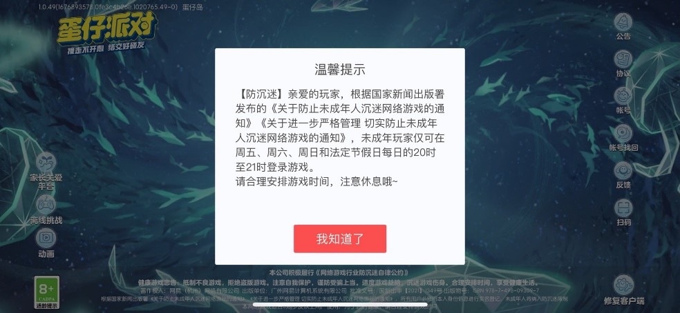 针对未成年游戏监管,《蛋仔派对》表示,凡是认证为未成年人的游戏账号,均会受到在线时长和付费限制约束。未成年人用户仅可在周五、周六、周日和法定节假日每日的 20:00 时至 21:00 时登录游戏,在当日游戏时长耗尽时将被强制退出游戏。同时严格执行未成年用户年龄的付费限制,未满 8 周岁的用户不能充值,其他年龄段均按照行业标准,单次付费金额不超过 100 元,月累计付费金额不超过 400 元。