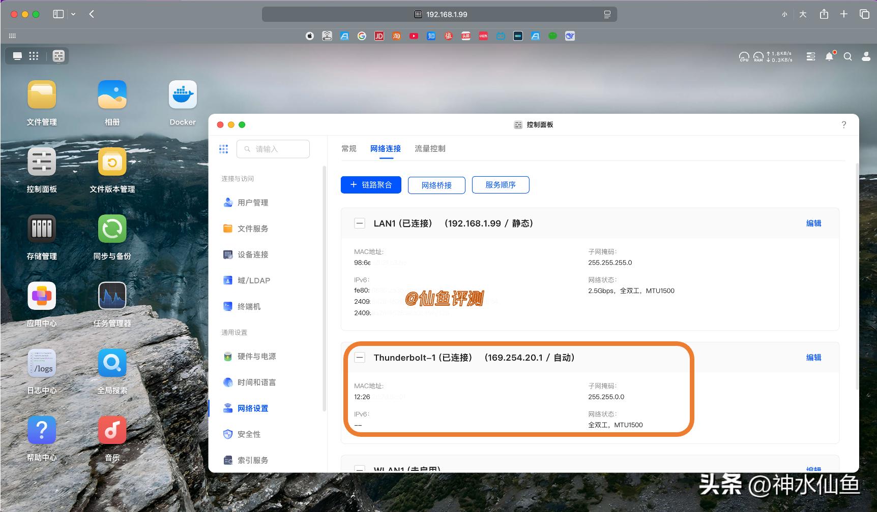 在NAS的网络连接里会看到Thundbolt已连接,IP地址是“169.254”开头的B类地址: